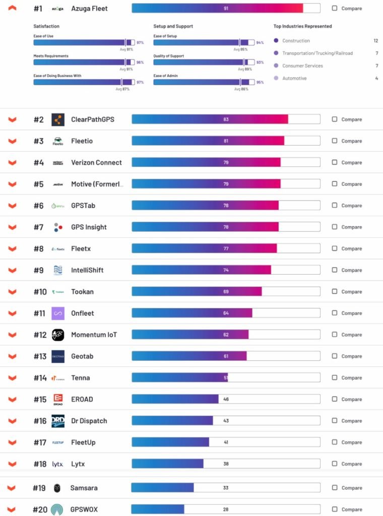 AZUGA está posicionado en el número 1 de los 20 mejores software de gestión de flotas. Esto nos complace enormemente pues llevamos más de 10 años trabajando con esta excelente marca.