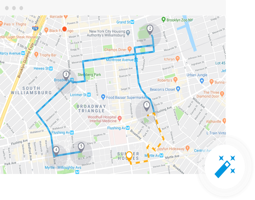 Llegue a más clientes en menos tiempo asignando el mapa de rutas de entrega a su personal de campo, visualice en mapas las rutas de sus pedidos y servicios de manera lógica y evite recorridos innecesarios y tiempos de retraso