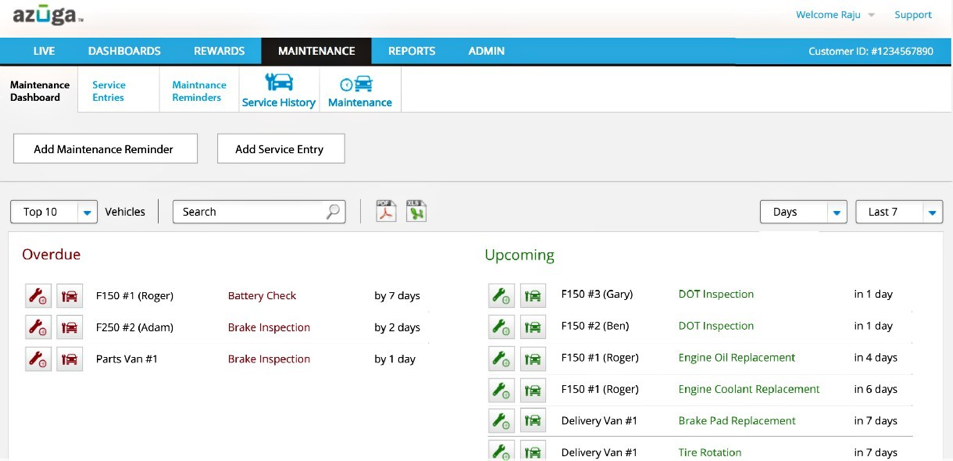 Utilice la bitácora de mantenimientos preventivos de nuestra plataforma AZUGA a un precio especial como parte de su paquete de telemetría y tenga su flota siempre a punto