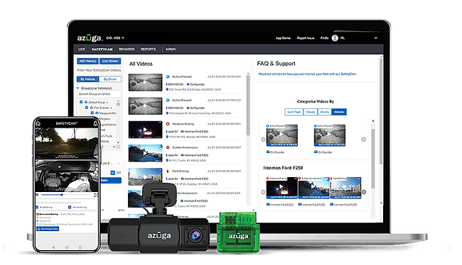 Cuando ocurra un evento en la carretera, obtenga una imagen completa con la cámara de doble cara más inteligente del mercado. El video SafetyCam, respaldado por el poder de Azuga Fleet, brinda las herramientas que necesita para mantener a sus conductores al tanto de su juego. Comienza a proteger tu activo más importante, tu gente.