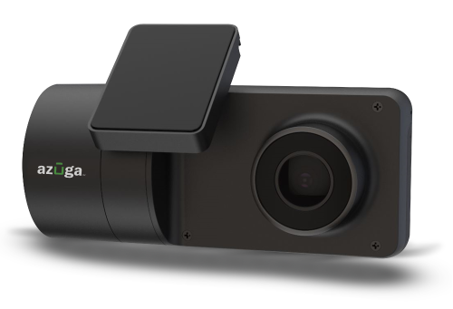SafetyCam carga eventos de conducción difíciles en la nube de Azuga Fleet y guarda videos completos del viaje (40 a 70 horas) en la tarjeta SD.